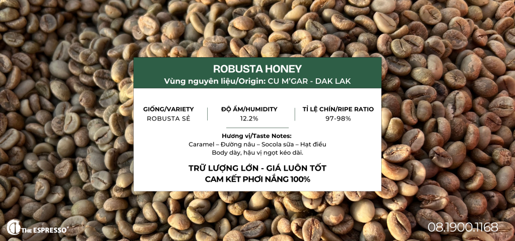 Với nguồn nguyên liệu từ vùng trồng Cư M’Gar – Đắk Lắk, Robusta Honey mang lại sự cân bằng giữa chất lượng cảm quan, sản lượng ổn định và giá thành hợp lý, trở thành lựa chọn phù hợp cho các nhà rang xay và quán cà phê.